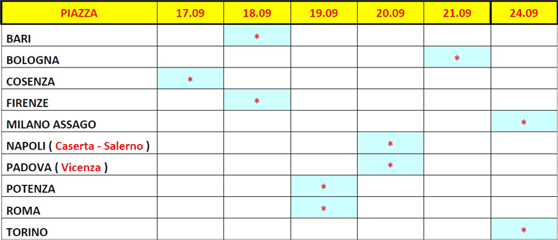 Qui di seguito il calendario delle assemblee nelle principali piazze.