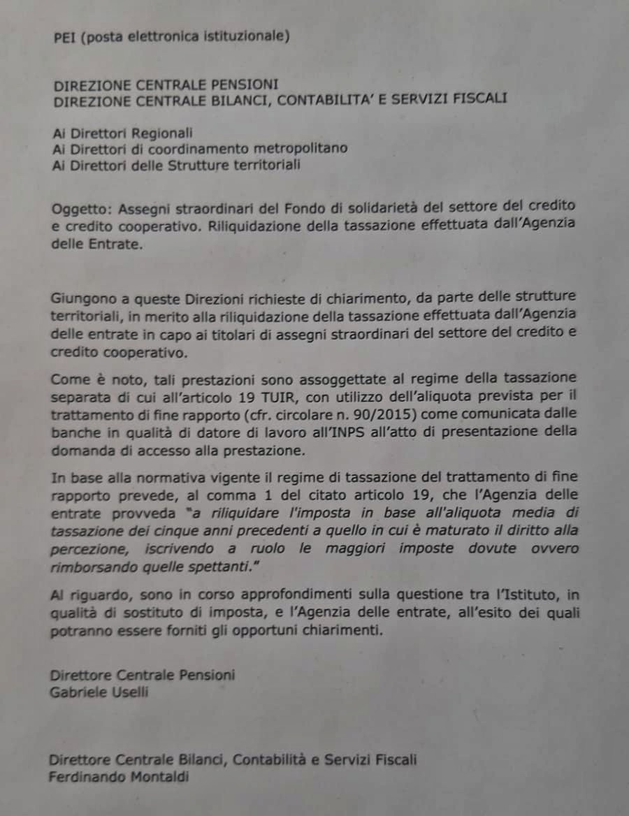 In relazione agli avvisi bonari inviati dall’Agenzia delle Entrate rispetto agli assegni straordinari del Fondo di solidarietà del credito e credito cooperativo, prosegue – in stretto contatto con la stessa ABI – la nostra iniziativa tesa a chiarire la questione e a tutelare le colleghe e i colleghi coinvolti.