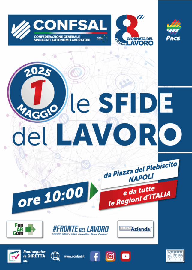 Si trasmette il link attivo dalle 08:00 del 1° maggio, per collegarsi al consueto evento CONFSAL che si terrà in piazza del Plebiscito a Napoli a cui parteciperà anche il Segretario Generale UNISIN – Emilio Contrasto.
