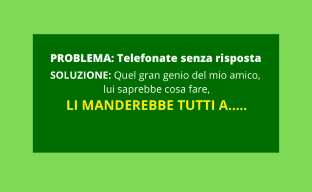 Cosa ti combinano invece i nostri intelligenti asintomatici? Per <<supportare l’azione di caring>> (che non sanno neppure loro cosa voglia dire, ma come diceva Salustri: “se vôi l’ammirazione de l’amichi nun faje capì mai quello che dichi.”) predispongono l’ennesimo report (chiamarlo elenco fa schifo) GIORNALIERO contenente le telefonate rimaste senza risposta ed i riferimenti del cliente da… ricontattare.