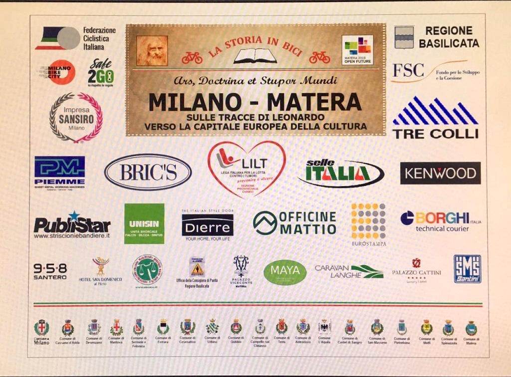 Un viaggio per riscoprire le bellezze del territorio, promuovere l’ambiente, le comunità, la cultura e unire, con il fil rouge del cinquecentesimo anniversario della morte di Leonardo da Vinci, tanti luoghi così diversi ma anche così simili dell’Italia. Una pedalata di circa 140 Km al giorno per sei giorni che si concluderà a Matera, Capitale europea della Cultura 2019.